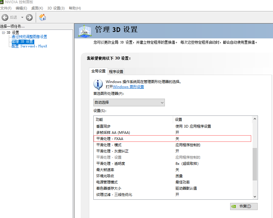 ## 解决办法1:关闭GPU渲染 在应用程序的快捷方式中加入参数“–disable-gpu” 例如: ``` "C:\Microsoft VS Code\Code.exe" --disable-gpu ``` 这样,VSCode就不会发虚了,Github Desktop等软件同理。 ## 解决办法2: 关闭 GPU FXAA 选项 在 NVIDIA 控制面板关闭 `FXAA`