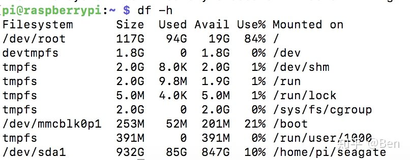 1. 插上硬盘查看状态,可以看到/dev/sda1就是需要挂载的移动硬盘。 ``` sudo fdisk -l ```  2. 查看硬盘状态,此时还没有挂载上去。 ``` df -h ```  3. 创建目录然后挂载上去。 ``` sudo mkdir /home/pi/seagate sudo mount /dev/sda1 /home/pi/seagate ``` > 取消挂载用 `umount /home/pi/seagate` 4. 再次查看硬盘状态,此时/dev/sda1已经挂载上去了。 ``` df -h ```  5. 安装NTFS格式可读写软件。 ``` sudo apt install ntfs-3g ``` 6. 加载内核模块。 ``` modprobe fuse ``` 7. 设置开机自动挂载,不要忽略`nofail`选项要不然没挂载成功会无法开机。 ``` # sudo vi /etc/fstab /dev/sda1 /home/pi/seagate ntfs-3g defaults,nofail,noexec,umask=0000 0 0 ``` 保存后使用命令`mount -a`进行挂载测试,没有报错信息说明fstab文件没有问题