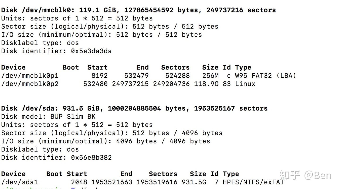 1. 插上硬盘查看状态,可以看到/dev/sda1就是需要挂载的移动硬盘。